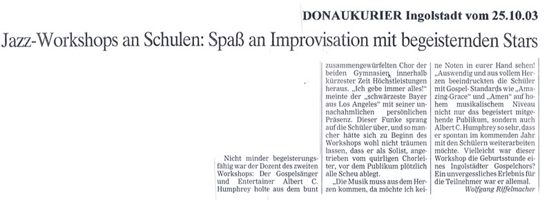 einem einzigartigen Gospelworkshop von Albert C. Humphrey